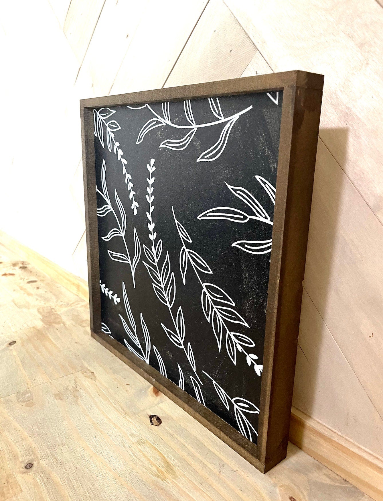 ** Each piece of wood is different and absorbs the stain and paint differently. Texture, knots, cracks, and other natural characteristics of the wood may or may not show up in your finished piece. Each piece will have its own unique finished look. All signs that are created in our shop are not identical. These marks are unintentional and therefore, in our opinion add character to a one of a kind sign. They will have imperfections, although we try to get them as close to perfect as we can.