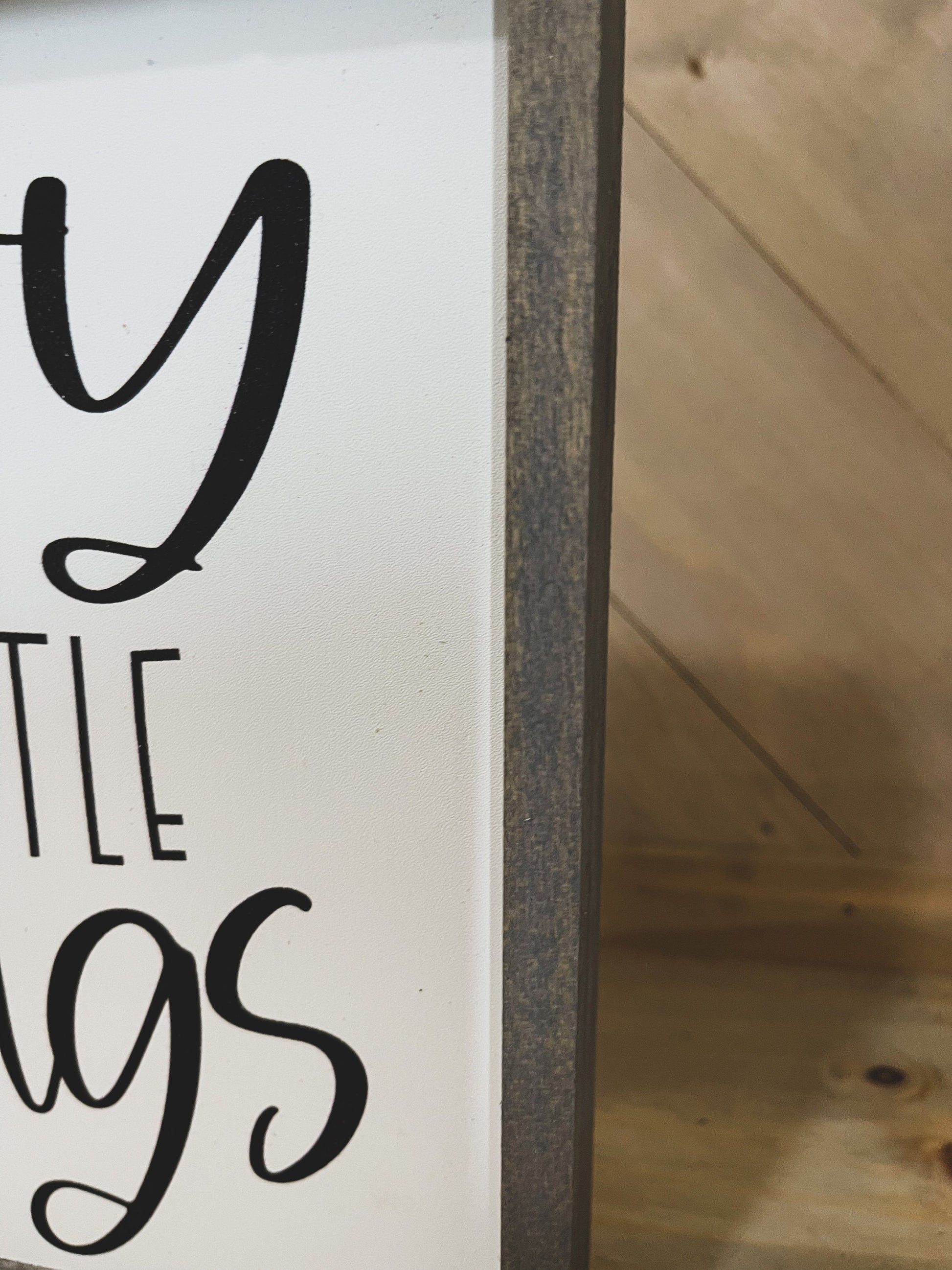 ** Each piece of wood is different and absorbs the stain and paint differently. Texture, knots, cracks, and other natural characteristics of the wood may or may not show up in your finished piece. Each piece will have its own unique finished look. All signs that are created in our shop are not identical. Please understand that signs may have letters or parts of the sign that may have needed touch-ups of additional paint after a stencil was used. We do our best to create clean crisp lines, but there are times that paint bleeds under the stencil slightly, when this occurs we make the decision to touch up the spots with a tool to remove the excess paint. Upon peeling off of the stencil, the wood may have bits of tick marks in the wood. These marks are unintentional and therefore, in our opinion add character to a one of a kind sign. They will have imperfections, although we try to get them as close to perfect as we can.