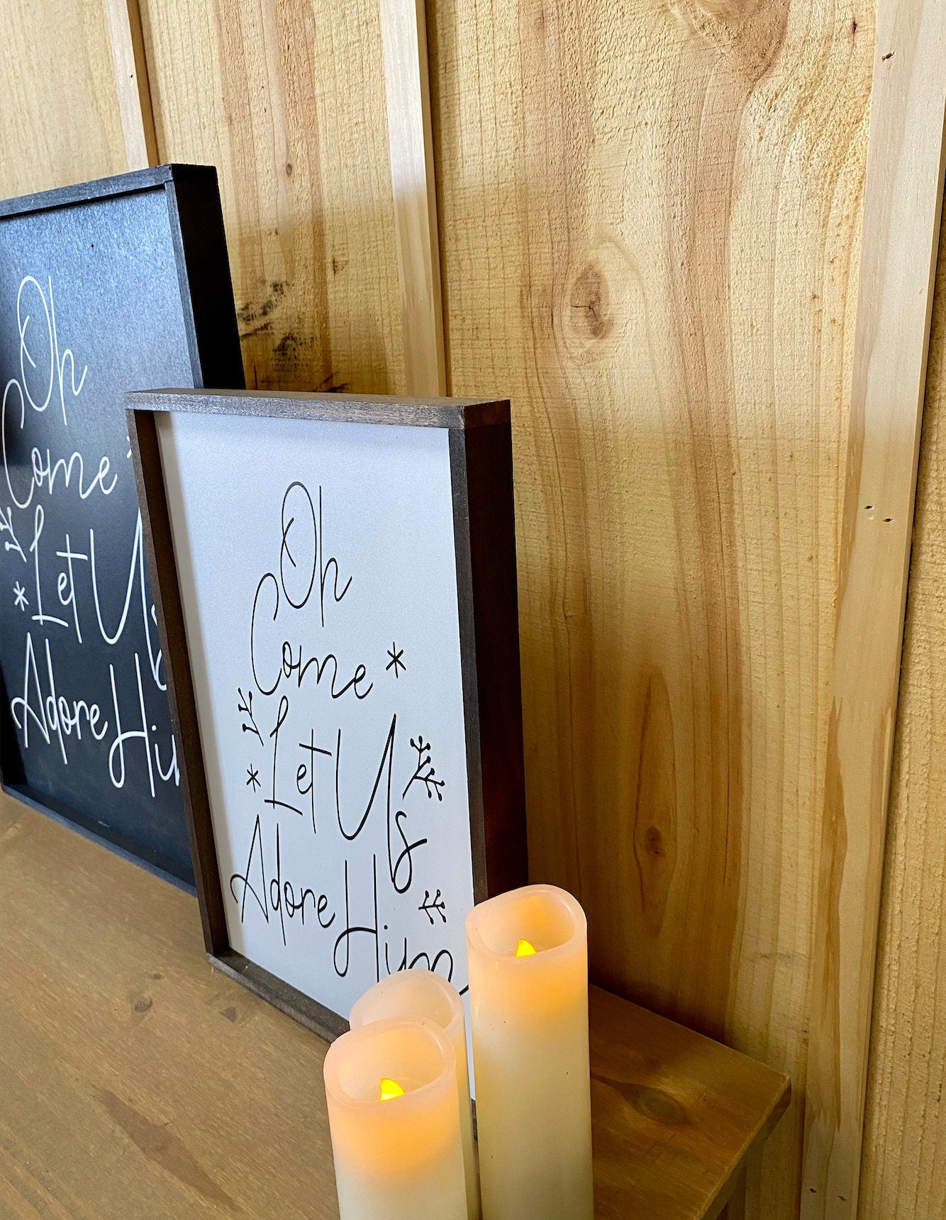 ** Each piece of wood is different and absorbs the stain and paint differently. Texture, knots, cracks, and other natural characteristics of the wood may or may not show up in your finished piece. Each piece will have its own unique finished look. All signs that are created in our shop are not identical. Please understand that signs may have letters or parts of the sign that may have needed touch-ups of additional paint after a stencil was used. We do our best to create clean crisp lines, but there are times that paint bleeds under the stencil slightly, when this occurs we make the decision to touch up the spots with a tool to remove the excess paint. Upon peeling off of the stencil, the wood may have bits of tick marks in the wood. These marks are unintentional and therefore, in our opinion add character to a one of a kind sign. They will have imperfections, although we try to get them as close to perfect as we can.
