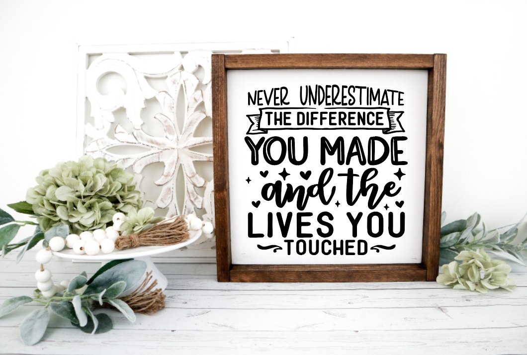 Retirement Wood Sign; Retired Teacher; Never Underestimate the difference you made and the lives you touched wood sign