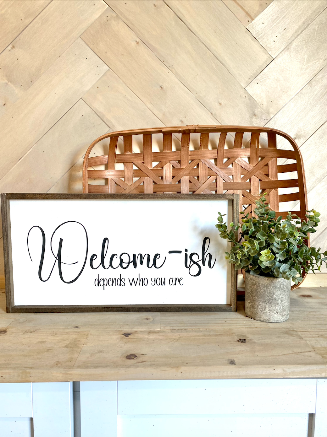 welcome-ish depends who you are family wood sign farmhouse humor sign funny livingroom sign