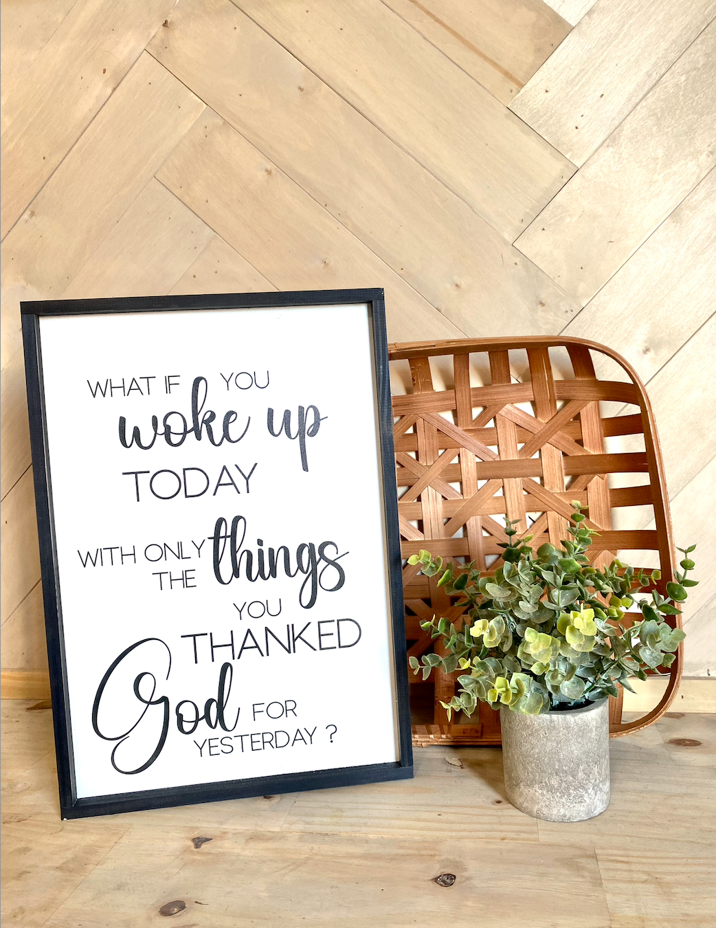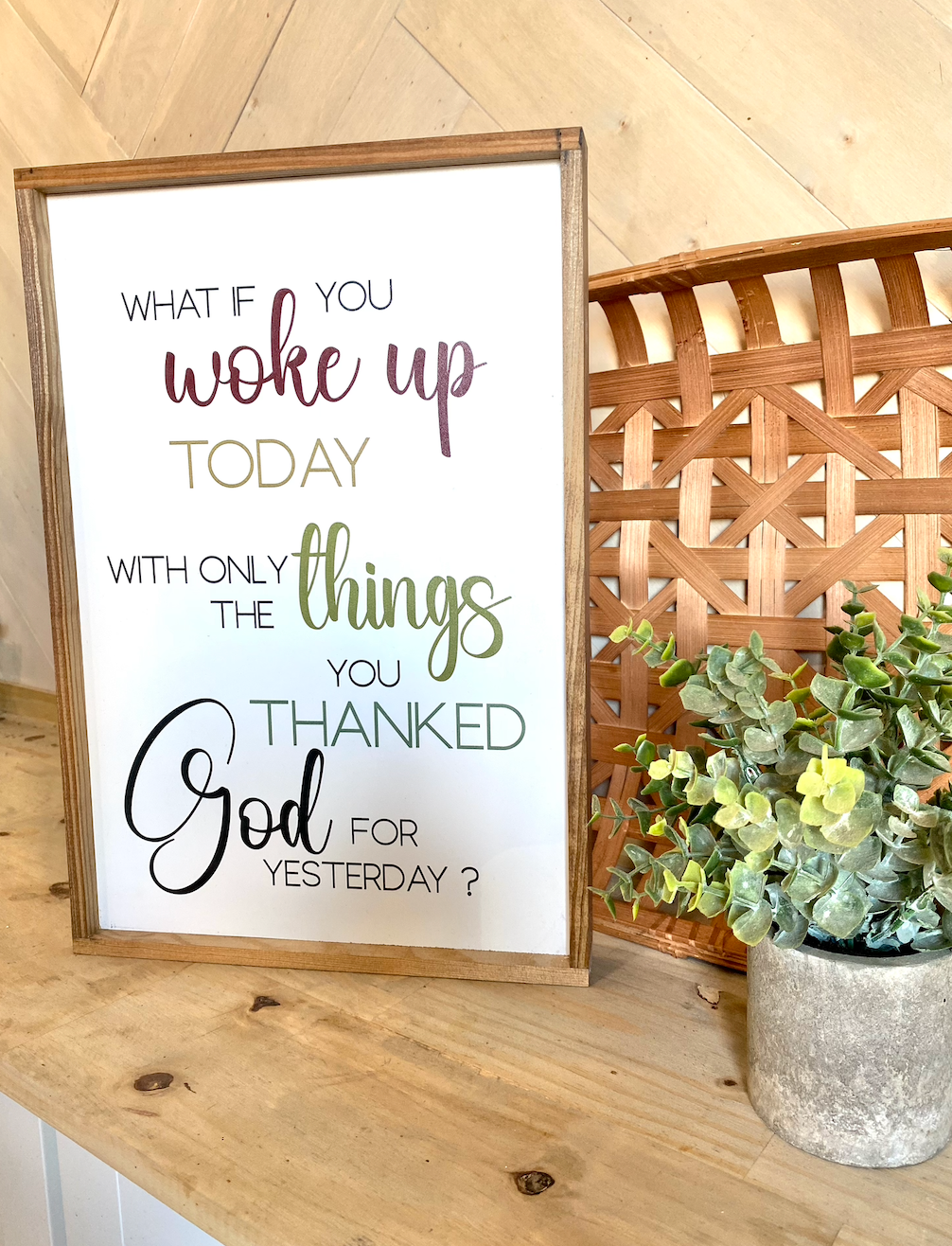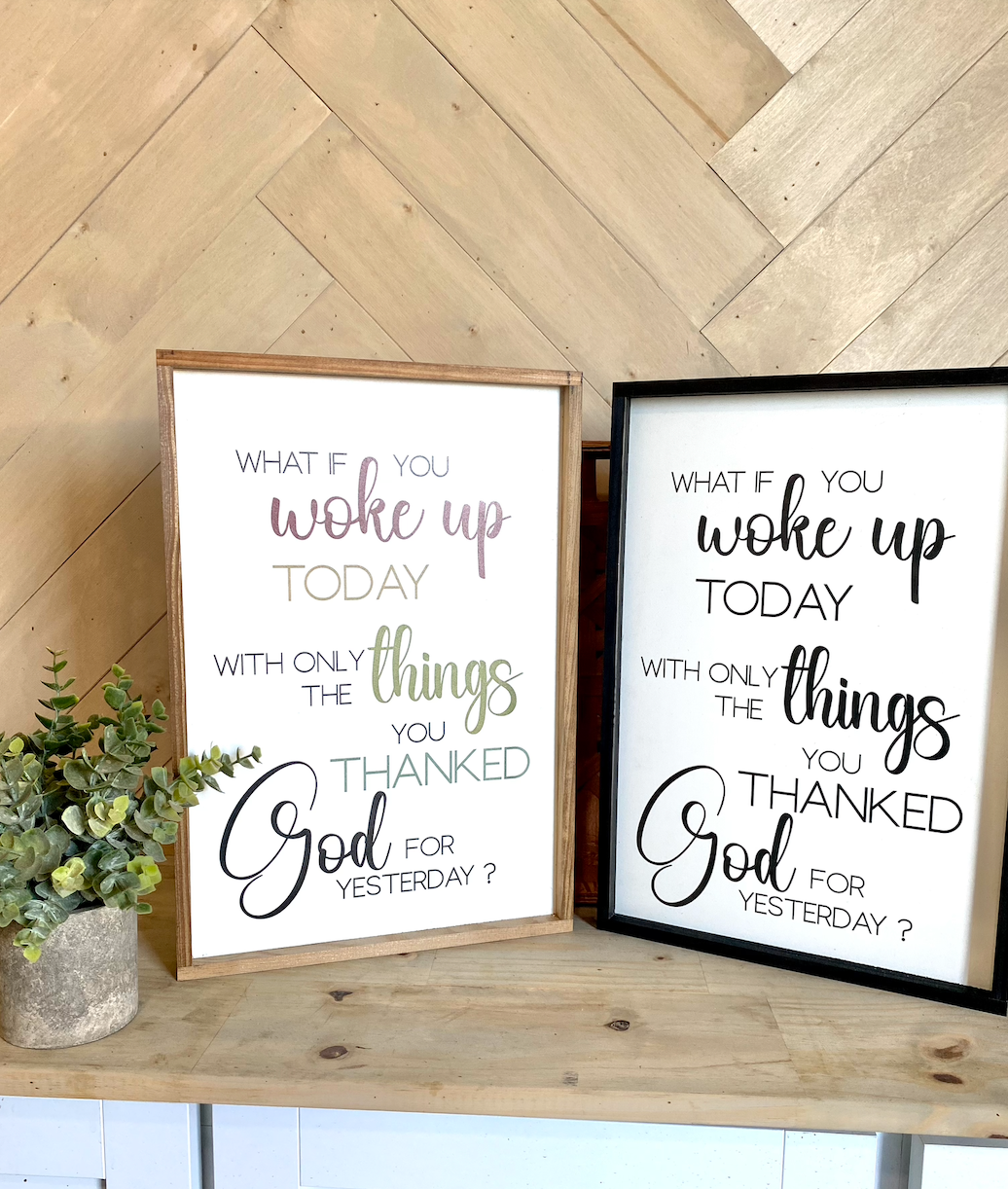 what if you woke up today with only the things you thanked god for yesterday wood sign religious sign