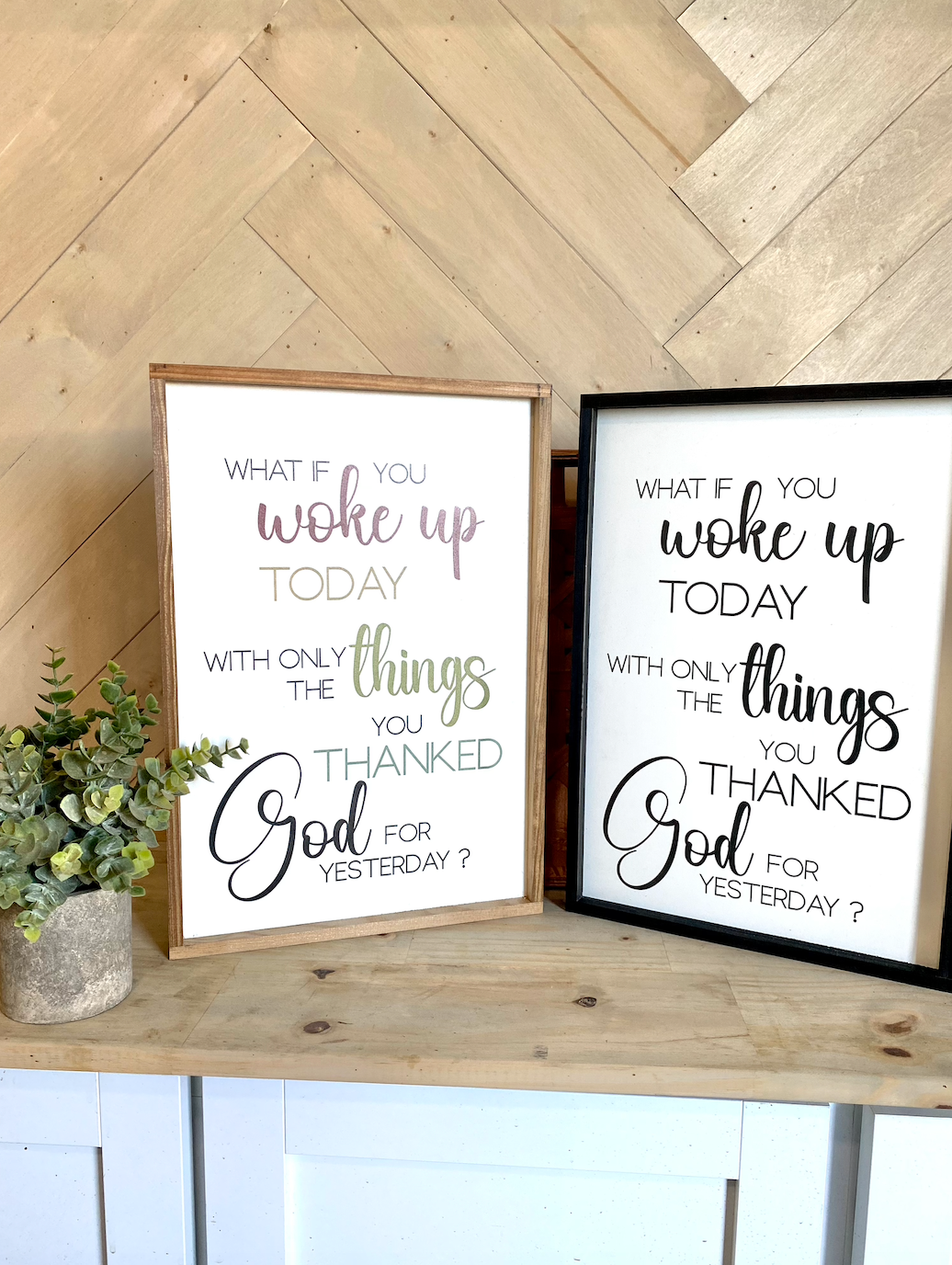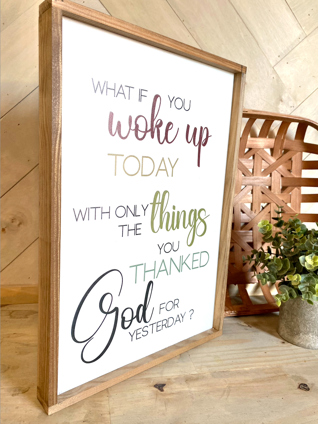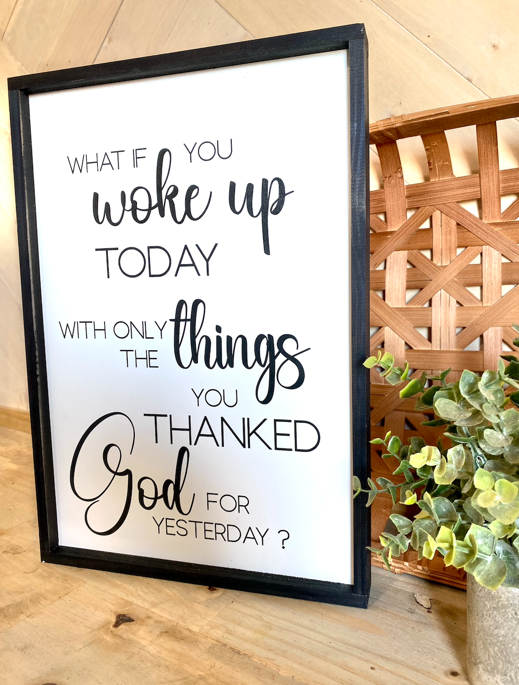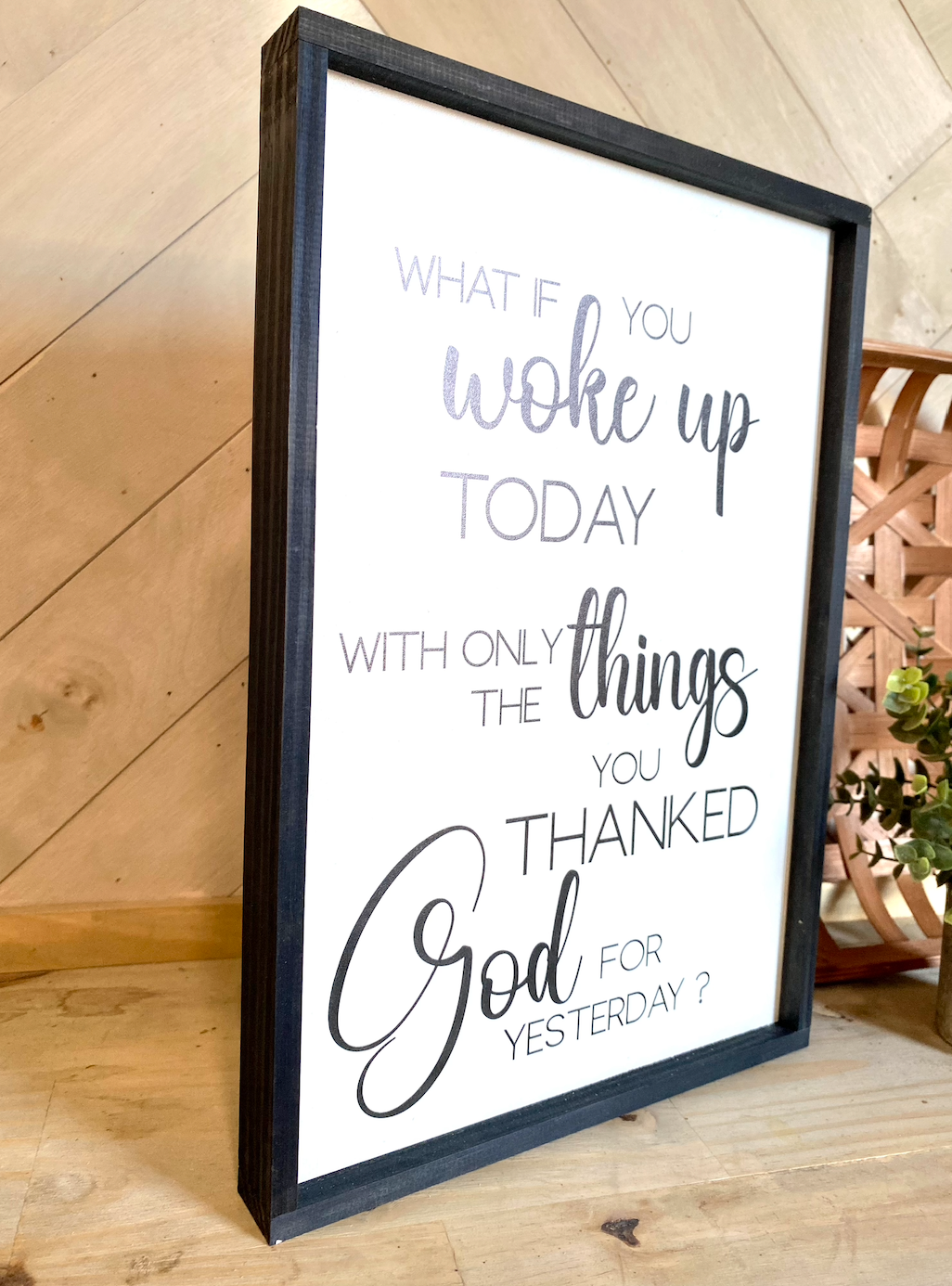 what if you woke up today with only the things you thanked god for yesterday wood sign religious sign